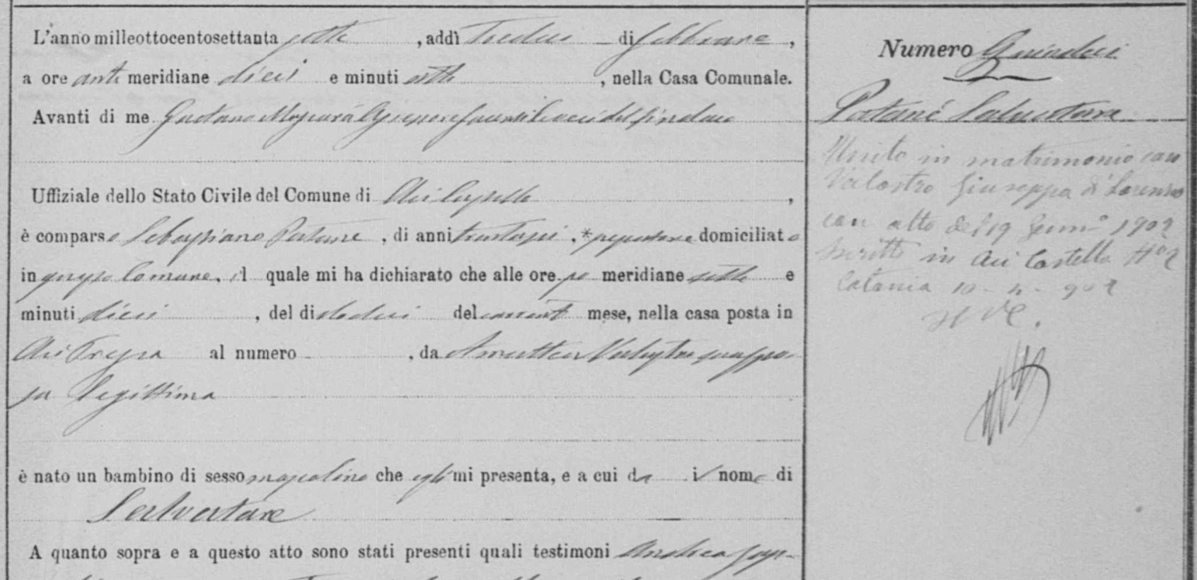 Patane, Salvatore (p.18) of Sebastiano, Maria?
