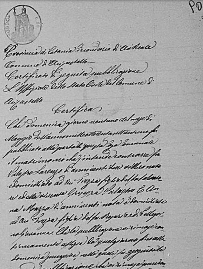 Marriage Cert of Salvatore and Josephine, possibly 1907, Aci Trezza.